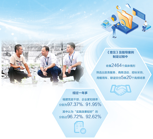 平易近营企业邀请人员出席取外商的签约典礼,能不克不及去?平易近营企业参评省级颁布的项,市级人员可否帮帮优化申报材料?官取商、政取企,哪些交往可为、哪些不成为?过去,有的“亲而不清”乱做为,有的“清而不亲”。自地方八项实施以来,全党上下鼎力纠“四风”、转做风,党风政风面目一新,党群干群关系愈发亲近。亲清政商关系,是明朗生态的题中应有之义。正在平易近营经济大省福建,2023年12月,省纪委监委印发《关于规范政商交往行为鞭策全面建立亲清政商关系的看法》,并发布20个指点案例,要求人员热诚取平易近营企业家交往,做到“亲而有度、清而无为”。颠末一年多实践,福建省纪委监委调研数据显示,对《看法》及指点案例,党政干部、企业家晓得率别离为97。37%、91。95%,此中认为“实践结果较好”的别离占96。72%、92。62%。轨制如何厘清政商交往鸿沟?若何激励干部担任做为?正在全党开展深切贯彻地方八项进修教育期间,记者正在福建实地看望。