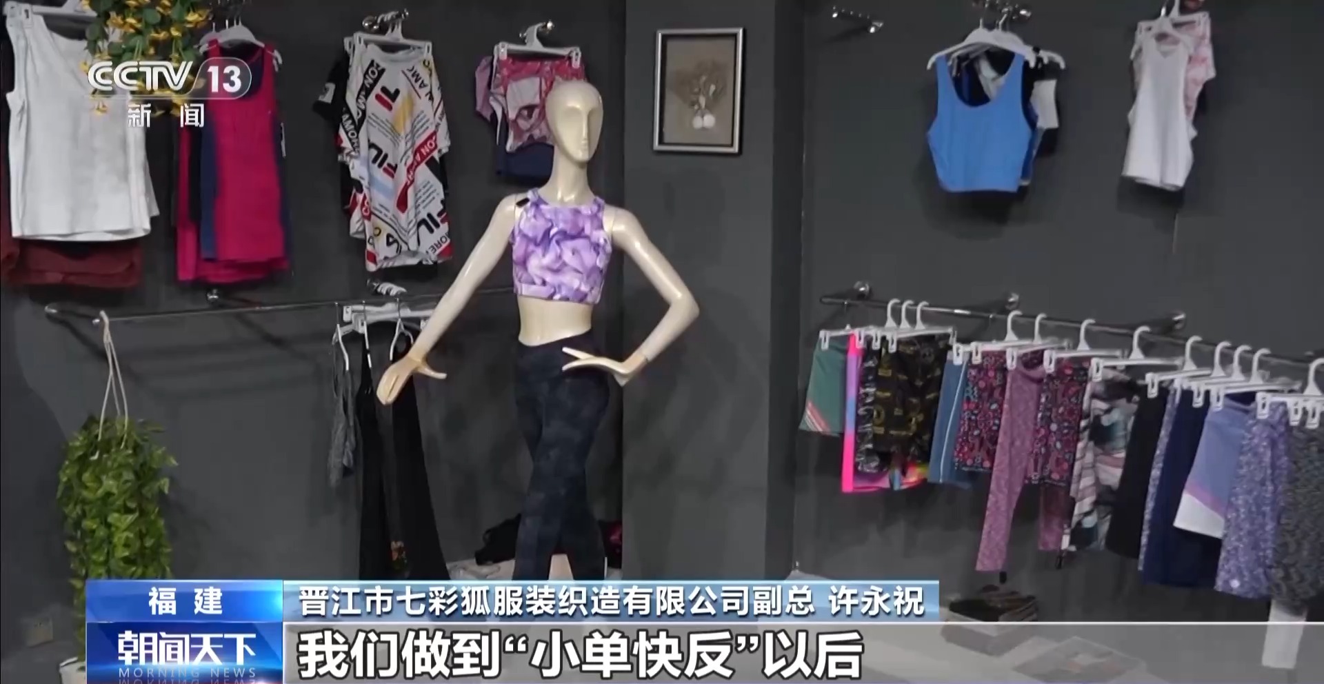 晋江市七彩狐服拆织制无限公司副总 许永祝:现正在新兴市场客户的一个最大的痛点就是库存压力大,我们做到“小单快反”当前,哪怕客人下10件订单,我们也能很是快速地给客人交付订单,整个新兴市场库存压力的痛点没了,无形中能帮我们公司拓展很是大的客户群体。