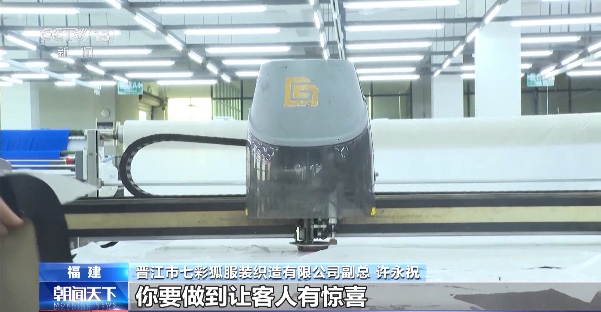 晋江市七彩狐服拆织制无限公司副总 许永祝:以前我们讲的是对劲度,可是我们近期倡导的是欣喜度。你要做到让客人有欣喜,要达到他想不到的工具给到他,他会感受到很是欣喜。客人跑不掉。