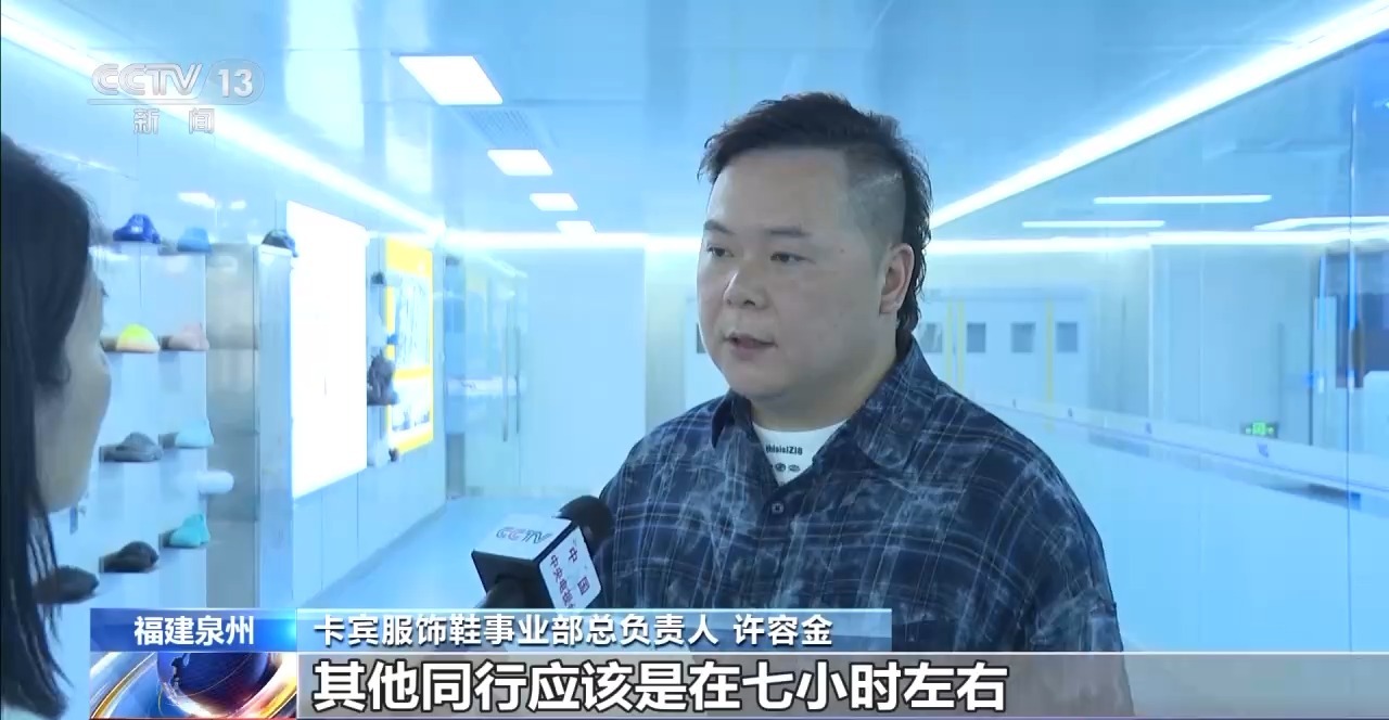 卡宾服饰鞋事业部总担任人 许容金:我们正在两小时能够打印3双,其他同业该当是正在七个小时摆布。这批货我们会正在这个月底之前,发到意大利。