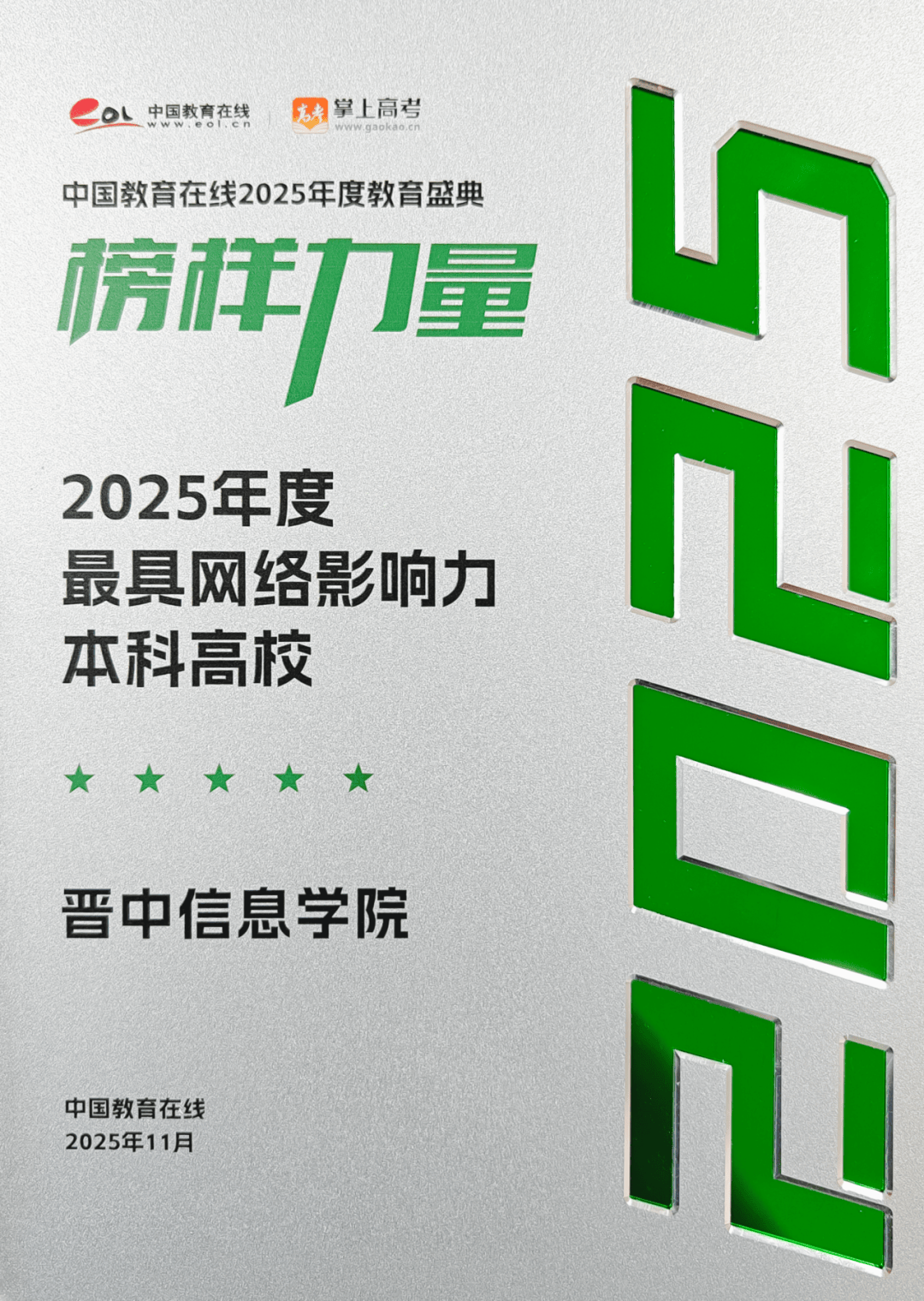 由晋中市太谷区委从办、晋中市太谷区文明扶植办公室承办的“2025年新时代文明实践优良办事项目”中智能工程学院“法育将来”专项意愿办事队打制的“布谷·不孤”现实无人扶养儿童关爱打算荣获二类项目。由高校讲授成长收集(CHED)、中国电子教育学会从办,武汉大学、超星泛雅集团承办的”超星杯”第七届全国高校夹杂式讲授设想立异大赛获名单揭晓,晋中消息学院数理讲授部教师从讲课程《高档数学A》荣获国赛三等。由出彩中国文艺组委会、非遗艺术展组委、中国文艺盛典栏目组从办,鸟巢文化核心、中国工艺美术馆(非遗馆)、中国平易近族商业推进会非遗核心鼎力支撑的“你好·非遗”2025全国首届非遗创做设想大赛获名单中由晋中消息学院非物质文化遗产研究核心、艺术传媒学院配合选送的掐丝琅做品《碰见信院》荣获大赛非遗身手A组“传承匠心银”,该做品由学校2024级视觉传达设想专业学生崔宇悦、郭闯将、杨润珂等学生非遗研究员设想创做。学校2支意愿宣讲团入选团地方2025年关爱步履“少年儿童平安守护打算”管道宣传意愿办事团队。学校“三下乡”暑期社会实践工做相关团队及品牌项目获团省委表彰,学校校团委荣获优良组织单元称号,“石楼新征”村落复兴推进团荣获优良团队称号,艺术传媒学院清漳畔·红遗“三创兴村”芳华艺玩打算荣获优良品牌。由山西省体育局、山西省教育厅从办的2025年山西省青少年校园脚球赛(大学组)女子脚球二级联赛中,学校女子脚球队荣获冠军,须眉脚球二级联赛中,学校须眉脚球队荣获季军。